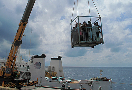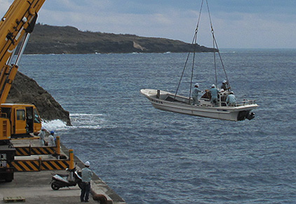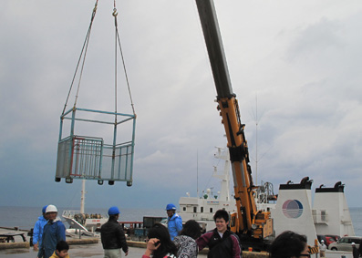 そのため最後にはしけと呼ばれるボートで回収作業をしてクレーンで吊り上げられる。