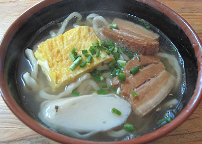 木灰汁と海水で作る手打ち麺は、うどんのようなしっかりした感じ。