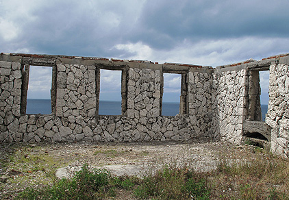 西港の上の高台に石積みの遺跡みたいなものがあった。