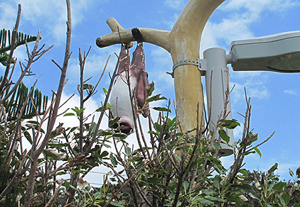 あと南大東島郵便局のポストにもダイトウオオコウモリがぶら下がっている。