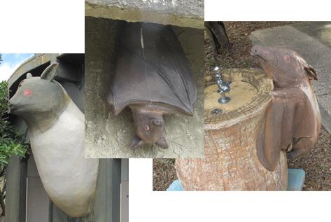 しかも他にもトイレや水道にはダイトウオオコウモリだらけ。