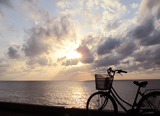 完全な夕日ではなかったけど、沖縄の東の果てで見てもきれいだった。